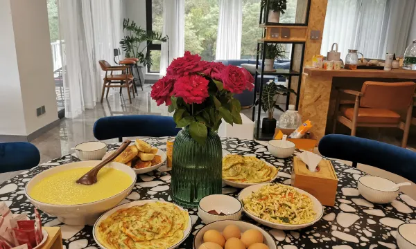 重點是老闆娘人超級奈斯,早餐直接給我們端屋裡了。説外面太冷了在房間裏吃暖和,感動啊。一大早看着窗外的山川小溪,肥喜鵲上下撲騰嘰嘰喳喳,吃着熱騰騰的早飯,覺得人間簡直太值得。