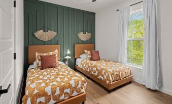 Inside, you’ll find three comfortable bedrooms—a king suite with en-suite bath, double sinks, and walk-in closet, plus a queen bedroom and a twin room with two single beds. Every bedroom (and the living room) includes a smart TV with YouTube TV, while high-speed internet and a dedicated office space make remote work effortless.