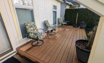 There is a great front deck with private yard and all important in the Northwest; SUNSHINE from SOUTHERN EXPOSURE.