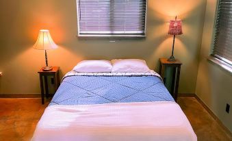 Full size sleeper in the living room with bedding provided. Perfect for one adult or two kiddos. While not ADA approved, its a 856 sq ft single level home with only one step out onto the back patio. Concrete floors throughout for cleanliness and if anything is needed please just ask. Slippers are highly recommended.