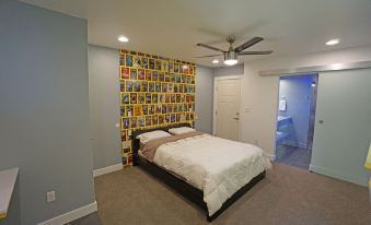Brand new bedroom/bathroom suite attached to a house within 7 minutes walk from Downtown Bend, Oregon. The guest quarter has separate entrance from outside under the carport. It also has a door into the house, but the door is locked for privacy. The room has fun National Geographic theme with high end bathroom that has marble shower and countertop. Good size closet is also in the room. The room has 43" ultra high definition TV with cable and a soundbar to stream music from TV or any other Bluetooth devices. Queen bed is ideal for individual or couple who like to stay close to the heart of downtown Bend and famous Mirror Pond that the Deschutes Brewery named one of their beers after. Kitchen is not available, but the room has small beverage cooler. The room has in-wall cadet heater. Air condition unit is not yet available, but the room has ceiling fan above the bed to help cool down during hot summer nights. Outside, under the carport, has corn-hole game and dart boards for guest to enjoy. Outdoor wood fire pit is also under construction.