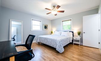 Newly renovated, pet friendly home with fenced in back yard, fire pit, large shaded patio with grill, and fully equipped kitchen. Property is close enough to Lake Michigan to hear the waves and is a short walk/ride to the Lakeview Bike Trail featuring walking paths and a new mountain bike trail. Short drive to downtown Saint Joseph, 2 miles to closest public beach Rocky Gap Park, and 3 miles from the Harbor Shores Golf Club. Master bed features a desk/vanity with connected bathroom. Perfect for wine tasting, weddings, or family vacations.About pets:Pets allowed: dogs (limit 2 total).About checkOut:Check out before 11:00 AM.About children:Children allowed: ages 0-17.About checkIn:Check in after 4:00 PM.About smoking:Smoking is not permitted.About minBookingAge:Minimum age to rent: 18.About events:No events allowed.