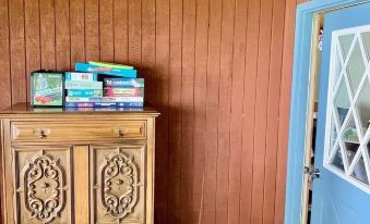 The screened in sunporch is right off the kitchen with amazing views of the lake. It has a table that gives you another spot to enjoy meals at. The room has LOADS of board games that will keep you entertained for the week!