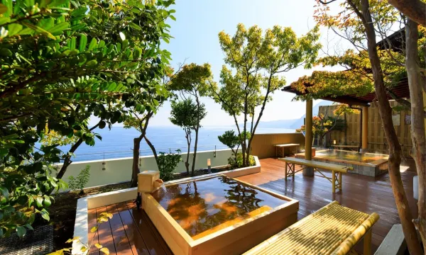 Camera in Stile Giapponese con Bagno Semi Aperto e Vista Mare
