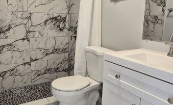 Sleeps up to 4 guests with two Queen size beds. Each bedroom has its own TV, ensuring privacy and enjoyment for all. The spacious living room features a large, comfy sofa and a 65” flat-screen TV for movie nights or binge-watching your favorite shows.
