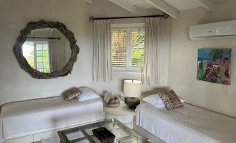 The Old Sugar House is welcoming and bright with a vibrant, open-hearted, homey ambiance.  The large common area of living room, bar and dining areas become a sociable central zone, spilling out onto the patio and pool.  It is available to rent from 3 bedrooms up to 6 bedrooms and is fully staffed with private Chef, Butler and Housekeeper 6 days weekly at no extra charge.  Pricing depends on amount of bedrooms required/number of guests in party.  In off peak periods the minimum rate is £1000 per night (throughout 2025) for the use of 3 x bedrooms/up to 6 guests.  There is then an additional £110 per person per night for additional guests requiring more bedrooms.  The villa can accommodate 12 guests as the Media room converts into a sixth bedroom (with Twin beds only) and has AC, ceiling fan, wardrobes and an en suite shower/wc.   Good wifi throughout the property.
