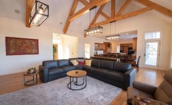 Enter the front door and take in the spaciousness of the open floor plan combining the living, dining and kitchen. Take some deep breaths as you look up at the 20 ft high ceilings. Sit by the gas fireplace and look out the massive windows at nature that surrounds you all around. Hungry and creative? Our well-stocked gourmet kitchen has 2 ovens, additional warming oven, 6 burners, 3 sinks, reverse osmosis drinking water, center island with 5 bar stools. Watch the wildlife as you prepare your favorite dish.
