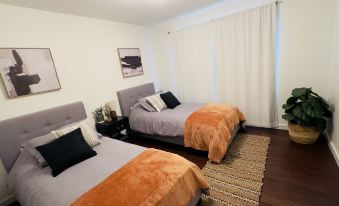 Both bathrooms are equipped with hair dryers and stocked with soap, shampoo, conditioner, and fresh towels. For a serene night's rest, choose between two rooms furnished with queen-sized beds and one room featuring two twin beds. One bathroom is outside two rooms, and one bathroom is in the master. The kitchen is fully equipped for culinary endeavors, boasting ample utensils, plates, glasses, cookware, bakeware, along with cooking oils and basic condiments. Should you require anything specific, kindly let us know before your stay! Feel free to bring your favorite laundry supplies to wash your clothing before packing to leave.