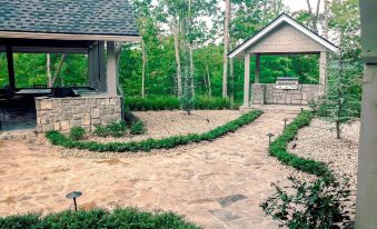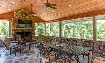 TOWNSEND SUNRISE DREAM is a truly unique home in the Smoky Mountains, a welcoming place for vacations, weekend getaways, and family reunions. The Private Pavilion, just steps from the house, has a stacked stone wood burning fireplace, large flat screen television, dining table, outdoor grill, comfortable seating for 10 around the fire and nearby large outdoor Hot Tub. Our home is located in Laurel Valley Resort, a gated community in Townsend, TN. considered to be “the peaceful side of the Smokies”. It is an easy drive to all the activities in Pigeon Forge and the Smoky Mountains. Laurel Valley Resort, which is less than a mile from the house, has a golf course, and the Laurel Valley outdoor pool and fitness center may be used by our guests as part of the rental.