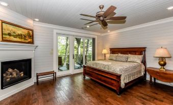 Every bedroom is unique, furnished with antiques, family heirlooms, and small touches to make the home feel like an English country manor! There is a private covered deck with secluded mountain views for each of the 5 bedrooms. One morning you wake up, there may be a misty fog that had settled in the valley surrounding the home. That is the time to take coffee to your bedroom deck, sit and enjoy the view!