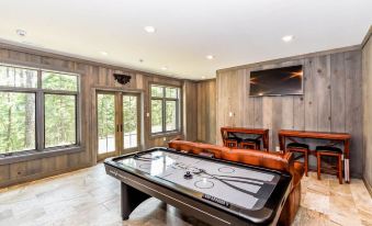 The downstairs game room, also with a flat screen tv, air hockey and full size arcade for 2 players with 60 games, adjoins a bunk room that sleeps 6 children. There is a theater room, with a 10-foot screen, overhead projector, Blu-Ray player, and electric reclining theater seats!
