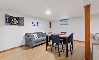 • Spacious and Comfortable: This 3-bedroom, 2-bathroom bungalow sleeps up to 8 guests, including a sofa bed (full size mattress) in the finished basement. The primary bedroom features a king-size bed, while the other two bedrooms have cozy queen beds. All 3 bedrooms feature ceiling fans for additional comfort.