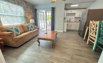 We Are Seasoned Superhosts on Another Platform With Several Thousand Reviews. This is A Spacious 2 Room 1 Bath, With a full sized sleeper in the living room. You Will Have The Entire Unit. King Sized Bed With A Pull Out Couch. Partially Enclosed Sitting Area. Floating Docks with Room for 2 Waverunners and it has a Comfortable Kayak Launch On The Imperial River About 1 Mi To The Gulf. Fresh Decorating, Full Size Fridge, 1.5 Mi 2 Beach. Fresh Shower. Bath is off Bedroom. Completely Renovated 11/2022. This is One Half of a Duplex. Part of an old girl scout fishing camp from the 1960"s. If this listing doesn't fit your needs, ask us for a link to all of our listings.