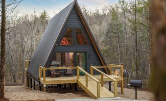 Your cozy getaway awaits in this luxurious A-frame cabin. Nestled on Cricket Creek, this cabin features a custom hand-crafted sauna, hot tub, fire pit, & fireplace. This cabin features color changing accent lights, a spacious master bedroom with king bed and an elevated loft with two twin beds. Cozy up in the private hot tub or enjoy a cup of coffee or your favorite beverage on the back deck as you listen to the serenity of the creek nearby. Experience blazing-fast Wi-Fi and a fully equipped kitchen, perfect for enjoying a home-cooked meal while streaming your favorite shows. Featuring an outdoor firepit, a charcoal grill, and a scenic walking path along the waterfront, where you can swim, fish, kayak and enjoy all of Tablerock lake adventures. This is the perfect spot to unwind, relax, and reconnect in the beauty of nature.