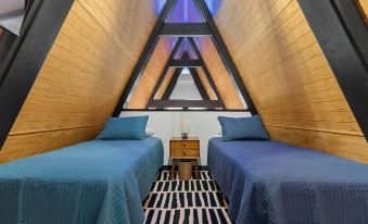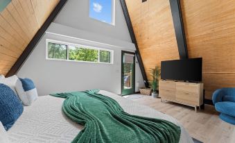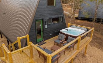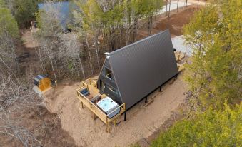 This new A -Frame cabin had everything you could think of in comfort and privacy. It was very well designed, right down to the furniture. It came with a private hot tub and a very unique dry sauna, built into a circular, separate pod. The lighting in the home was amazing. A little river runs behind this home. Aside from food and drink, you don't need anything else besides your toiletries, and they even supplied some of that. This beautiful came with all the comforts of home plus. I can't wait to return. Great host.