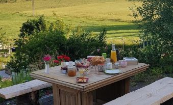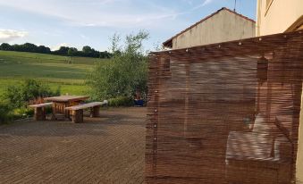 Établissement dans une commune assez calme. Chambre propre. La salle pour le petit déjeuner est à revoir: assez par un escalier un peu abrupt et on arrive dans un ancien garage. La propriétaire est peu disponible pour privilégier son activité principale en télétravail, contact téléphonique. La vue donne sur des prairies