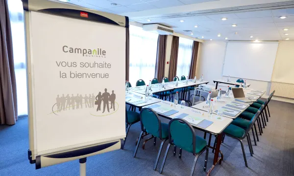 Hotel looked drab, scruffy and down at heel when we drove in to thr car park. Receptionist friendly and helpful, but even though not full could not accommodate my request for a ground floor room instead of 2nd floor no lift. Rooms very very tired and bathroom worse, with only one light working! It was however all very clean with fresh bedding and towels. Im guessing this Campanile is yet to receive a refurbishment! Also strangely the restaurant was only open on Monday Tuesday and Thursday - closed at weekends! Had to get back in the car after a ling drive from Italy to go and find a restaurant for dinner. Not ideal and wouldnt stay againin this Campanile.