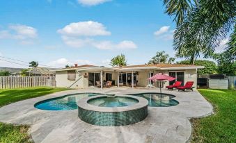 Beautiful 3 bedroom home with oversized backyard complete with a brand new heated swimming pool and hot tub. Located 1 mile from the beach in very desireable neighborhood. Private yard and walking distance to beach, intercoastal, shops and restaurants on the water.About pets:No pets allowed, service animals permitted.About checkOut:Check out before 10:00 AM.About children:Children allowed: ages 0-17.About customRules:Hot tub and pool usage at your own risk..In the event of an unauthorized party that disrupts neighbors, I will immediately terminate the bookings remaining days and evacuate the property..About checkIn:Check in after 4:00 PM.About smoking:Smoking is not permitted.About minBookingAge:Minimum age to rent: 24.About events:No events allowed.No parties of any kind.