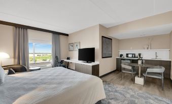 Arredate in modo accogliente, le sistemazioni del Brampton Hilton Garden Inn vantano mobili in legno scuro, un forno a microonde, un mini frigorifero, una macchinetta del caffè, una TV via cavo e una grande scrivania.