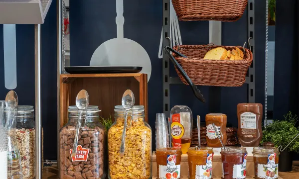 La colazione a buffet è servita nei giorni feriali dalle ore 06:30 alle ore 10:00 e nel fine settimana dalle ore 07:30 alle ore 10:30, dietro pagamento di un supplemento.