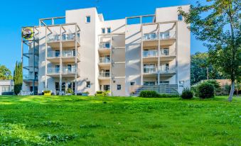 En premier lieu, un hôte d'accueil agréable, disponible et d'une gentillesse remarquable. L'hôtel est dans un parc arboré, au calme. Les chambres sont modernes, spacieuses et à la literie très confortable. Le baby-foot mis à disposition gratuitement permet de passer des moments sympathiques. Etablissement excentré mais c'est le gage d'un environnement calme. Seul bémol, le petit-déjeuner à un prix un peu élevé. Les produits sont de qualité mais le choix n'a rien d'exceptionnel.