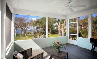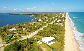 Total renovation of Upper unit duplex sitting on 3/4 acres directly on the Indian River with a 2 minute walk through our privately owned property to a quiet, unpopulated beach. Imagine starting and ending each luxurious vacation day with a beach sunrise and a river sunset.