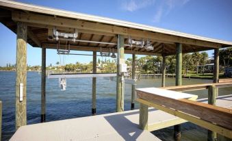 This immaculate space is furnished with new furniture throughout including two smart tv's. Your stay at OASIS gives you access to propane grill, beach chairs and umbrella, yard games, and a private dock to soak in all the goodness and Florida sun or, throw in your fishing line.