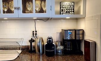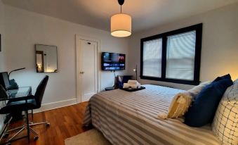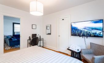 Immerse yourself in the ultimate comfort and style in this beautifully designed 2-bedroom apartment. Featuring plush blue velvet sofas, king-sized beds, and TVs in every bedroom and the living room, this space is tailored for relaxation and entertainment. With a coffee bar and a spacious backyard, it’s the perfect spot to unwind or entertain. Centrally located, this rare gem provides easy access to top attractions, making it an ideal retreat for your city stay.