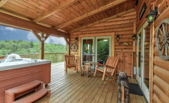Beautiful, new roomy and great log home- hot tub view was amazing