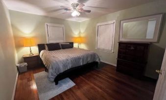 You'll be close to everything in Brownfield when you stay at this centrally-located house. Three bedrooms, one bath. Each room has its own closet,dresser and hardwood floors. The master bedroom has a King Sized bed. The middle room has bunkbeds. And the third bedroom has twin beds with XL length mattresses which are about 4 inches longer than regular twin mattresses. Just a few blocks from the High School and the football stadium.