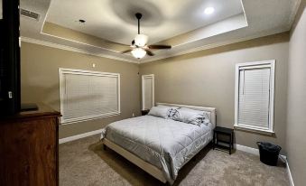 Features include a gorgeous kitchen with a huge island. A laundry room. A spacious living room with access to WiFi included. Master bath includes a walk in shower. Bedrooms include 3 comfortable beds, a king & 2 queens that sleep up to 6, an air mattress that sleeps up to 2 adults. College Station is less than 5 miles away. Texas A&M Campus, Northgate District, & Kyle Field being 12-18 minutes away.About pets:Pets allowed: limit 1 total.If you have pets please clean up after them..About checkOut:Check out before 11:00 AM.About children:Children allowed: ages 0-17.About checkIn:Check in after 2:00 PM.About smoking:Smoking is not permitted.About minBookingAge:Minimum age to rent: 18.About events:No events allowed.