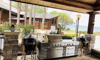 - Outdoor Kitchen with propane grill, wood-fueled barbecue smoker, and two clay pits for creative cooking