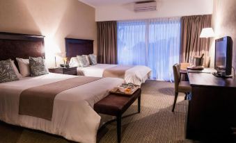 El predio es muy lindo, las piletas también. Tuvimos un inconveniente con la reserva, porque pedí una habitación con cama king y me dieron una con dos camas Queen (una de ellas tenía el colchón completamente vencido). Cabe destacar la atención del personal, súper atentos y resolutivos, no tenían en ese momento una habitación pero al día siguiente nos reubicaron y de cortesía nos regalaron un circuito de spa. La habitación es grande, espaciosa pero se nota que falta mantenimiento. Las sabanas son mucho más chicas que el colchón, la cama no es muy cómoda, la limpieza no es la mejor y al bañarte se inundaba el baño. Más allá de eso la experiencia fue muy buena, la atención de todos fue excelente. El desayuno es variado, todo el tiempo reponiendo las cosas que se terminaban hasta el final, un desayuno clásico argentino. Panes, mermelada, queso, fiambres, manteca, sandwich, chipa, frutas, budines, tortas, café, leche, yogur, chocolatada, etc. En el restaurante se come bien aunque los precios son elevados en relación a la oferta de chascomus en general, aprox $40.000 por persona Creo que por el precio y categoría del hotel le falta un poco de mantención y limpieza. Pero la pasamos muy bien y es muy recomendable para ir con niños.