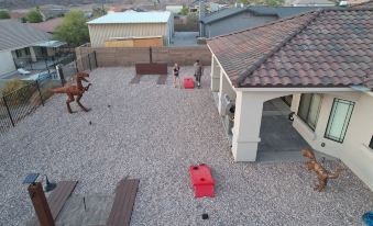 Nestled in a prime location near the Colorado River and Lake Mojave, our Jurassic-themed home offers a unique blend of prehistoric charm and modern comfort. Step inside to discover a world where dinosaurs roam and luxury meets wilderness.