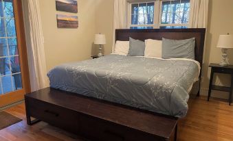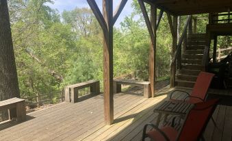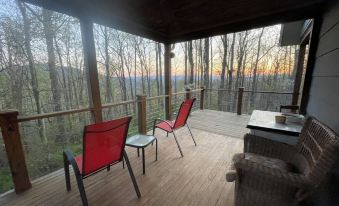 Charming, private cabin on a mountainside yet close to local attractions. We were greeted by wood thrush song and a bear sighting! The high back porch was the perfect spot for coffee, birdwatching, or a good book. Comfy bed, separate lower level we didn’t use also has outdoor access. Great spot!