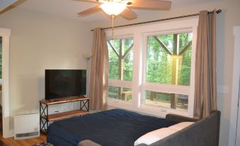 Just what we were looking for. Quiet and in the woods, but very convenient to get to Asheville or Black Mountain. Comfortable and spacious, and we only used the upper floor. The kitchen is awesome. Great communication from Rodney answering questions I had. It pains me to give 5 stars only because I can't give 6. Will definitely be back.