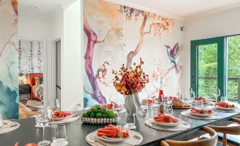 Our stylishly decorated bedrooms ensure restful nights, while the bunk room, complete with a whimsical forest mural and play teepee, will delight the kids. Even your four-legged family members will feel at home with our thoughtful pet amenities.