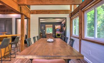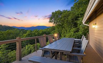 Step inside Blue Sky Vista and discover a home full of character and amenities, including a jetted tub and cedar sauna to help you start your day or unwind after a busy one. Enjoy home-cooked meals at the family dining table and relax in the spacious main living area. There is plenty of space for your entire group to retire to in one of the 5 bedrooms plus there is a loft with a king bed and sitting area for bonus sleeping. Kids and the young at heart will love the Foo Fighter Pinball Machine and Video Arcade Machine in the game room. With five bedrooms and three full baths across three levels, there’s plenty of room for everyone to find their own quiet space. Centrally located only 20 minutes from downtown Asheville, discover the wonders of Western North Carolina at Blue Sky Vista!