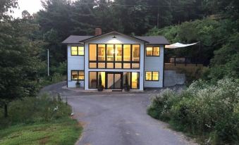 Only 12 miles from Asheville, Totally remodeled contemporary farmhouse, great living room open plan fully stocked kitchen with wall of windows overlooking natural pond, creeks, & fire fly meadow. Hot tub and springs are a hit with the kids! Art of Asheville adorns this beautiful home located on 50 acres of wildlife filled rain forest abutting Nature Conservancy land. 20 minutes to lake Lure, Chimney rock , enjoy the peaceful pace of life in the country easy drive only minutes to townAbout pets:Pets allowed: limit 2 total.We charge $50 per animal / stay.About checkOut:Check out before 10:00 AM.About children:Children allowed: ages 0-17.About checkIn:Check in after 3:00 PM.About smoking:Smoking is not permitted.Smoking of anything not allowed inside the house..About minBookingAge:Minimum age to rent: 18.About events:No events allowed.