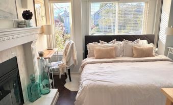 I stayed for three months over the winter. Having laundry in the unit was awesome. Bed very comfortable. Wonderful location...Confederation Park behind & lovely walk to library, fitness centre & Hastings St. Really great bathroom...big shower & lots of storage space. So nice to have a fireplace. What would I change? Get rid of the king size bed & put in a high-quality sofa bed so there's somewhere to sit comfortably & have some space during the day. I'm an artist & a 3x3 ft table was challenging, but I understand it is a small space to accomodate a bigger table. The chairs were quite awful. The little desk was fine for a computer but the chair was the wrong height The unit was spotless when I arrived, & cosy, & the little deck would be really nice for summer evenings. I found the pathway to the stairs a bit of a safety hazard, as it was not paved or gravelled to make it even, has stepping stones at odd intervals & was not lighted. The house is on a steep hill & there was quite often a car of one of the tenants parked right in front of the pathway access.The host did provide good lighting for the stairs & when there was a problem with it attended to it very quickly. In all fairness, for a short stay of a few days this little studio apartment is perfect, especially with a bus stop a two-minute walk away. For a longer stay such as mine some of the mentioned issues were more challenging. The neighbourhood is very beautiful, safe & quiet.I'm an artist & a 3fx3ft table tohavfimo