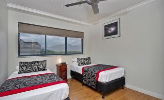 Nice size apartments with good amenities. It's old and could use some maintenance by some of the owners, but it was clearly a high quality place when it was built. Our apartment wasn't ready when we checked in and had to wait nearly an hour. The dishes were dirty when we finally got in. The master bed base was broken and needy jerry rigging to make stop the mattress sagging. The second bedroom ceiling fan failed on the second last day of our week long stay. It was a comfortable place with secure parking. Oh... The entire East side of the building (the one we were on) is completely overshadowed by the Cairns Hospital. Yes, every room has ocean views, but some are glimpses. The staff were friendly and tried to be helpful. If you like to walk, Cairns city is within 1km. There is also a bus stop right outside at the hospital and tickets are cheap. Might be worth it as parking in Cairns is expensive if you can't snag a free spot. Despite the hospital neighbour, unless there's a chopper landing over the road it's generally quiet at night. The ambulances try to avoid sirens.