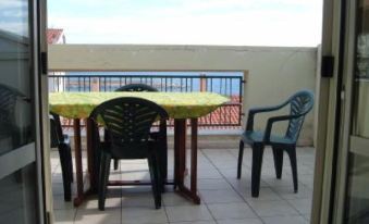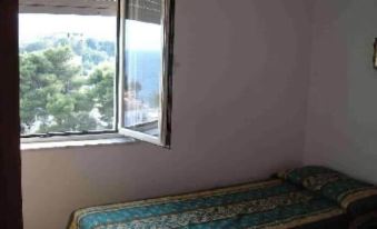 Apartment 80 m away from the beach, sleeps 4: there are 2 double bedrooms, living room with kitchenette, bathroom with shower, terrace with a stunning view of the gulf. 1 bedroom with a master bed, 1 bedroom with 2 single beds. Every room has a wardrobe and a window. Living room with fully equipped kitchenette with 4 burners, oven, refrigerator, tableware, saucepans, cutlery, dishes and glasses, coffee maker and all necessary flatware to cook and eat. Table with 5 chairs. Sofa. TV. Equipped terrace with table, chairs and parasol.