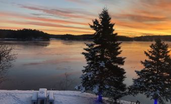 Wake-up to glorious sunrises, relax on one of the many outside seating areas, swim, float, fish, kayak, go boating, whale/bird watching, river rafting, leaf peeping, nap on the hammocks, sun bath, have a beach/pit fire, golf, hike, catch a movie or summer concert, or simply enjoy the incredible water views, and the ever changing (25’) tides from the inside.
