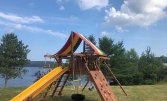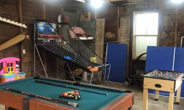 There is a private office shed at the water’s edge with WiFi, should you need to work. There is a pool/ping-pong, air hockey, & foosball table & basketball arcade in the barn for those rainy days. There are also books, board games, children’s toys, and a large Rainbow Castle swing playset and a fenced-in toddler play area.