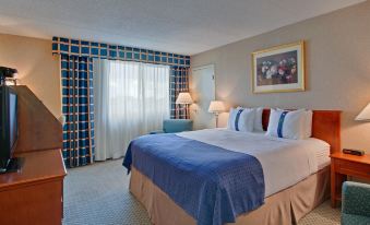 Was given a room that was missing a TV and had a broken nightstand. The door was jammed as well.