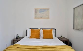 As you step through the front doors, you'll be greeted by a wall of windows on your right, flooding the interior with natural light. The expansive open area seamlessly combines the living room and an inviting eat-in kitchen. The bathroom, adorned with beautiful tile work, is a sight to behold. Sunlight bathes the open floor plan throughout the day, creating an ideal environment for conversations while preparing a meal or enjoying a glass of rosé. Vaulted ceilings add to the spacious and airy ambiance, making this an inviting space for all your gatherings. This home comfortably accommodates 4 guests with 2 spacious bedrooms featuring luxury linens.