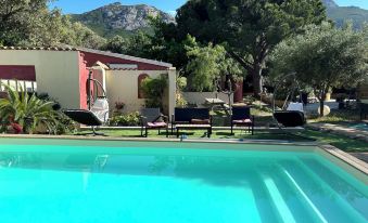 Très bon accueil, hôtes très agréables et de bons conseils. . Logement impeccable avec clim. Situé à 2 km de la citadelle. Petit déjeuner Corse ou classique délicieux. Dîner travaillé par le chef avec des produits frais et très bon. Parking privé Belle piscine