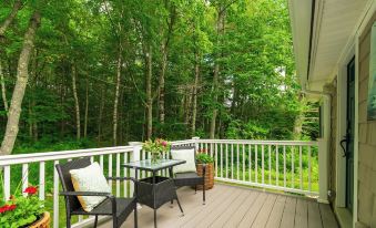It’s a charming house, well appointed with comfortable furniture. Nice touches like fresh flowers, Nespresso maker and pods, various toiletries. The back deck overlooks a wooded area with a babbling brook.