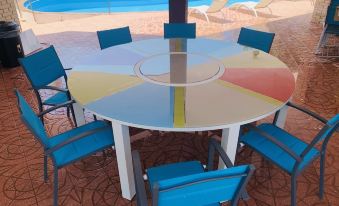La casa está genial, son habitaciones amplias donde cada uno tiene su aire acondicionado, así como el salón. Cocina completa y espaciosa. El jardín es agradable, la zona del porche también está muy bien.No fue mi caso pero la casa está genial para ir con niños, piscina limpia y vallada, juegos, espacios dedicados.La anfitriona estuvo pendiente de nosotros, y nos permitió salir más tarde para mayor comodidad.