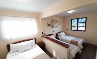 Quarto muito diferente do anúncio, chão carpete com muito pó, pensei em tirar o tapete para meu bebê engatinhar no carpete puro e não ter o que colocar na boca e tinha muito pó embaixo, acho que limpam apenas por cima, quando chegamos não tinha TV, tivemos que solicitar e atenderam a nossa solicitação, estacionamento bem pequeno, pelo que entendemos cabiam 3 carros apenas, mas informaram que era tranquilo deixar na rua, o atendimento gostamos, café da manhã com poucas opções, porém gostoso, bem caseirinho. Nossa insatisfação foi com o quarto, nossa estadia ficou quase 700 reais, mas não vale pelo que entregam.